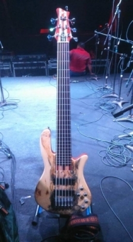 Um baixo WG único, foi roubado do meu carro enquanto eu voltava na casa de show West show, para o recebimento do trabalho, é um instrumento único, pois a madeira da frente ( Top) não existe cortes iguais nunca, madeira chamada Bukeye Burl.