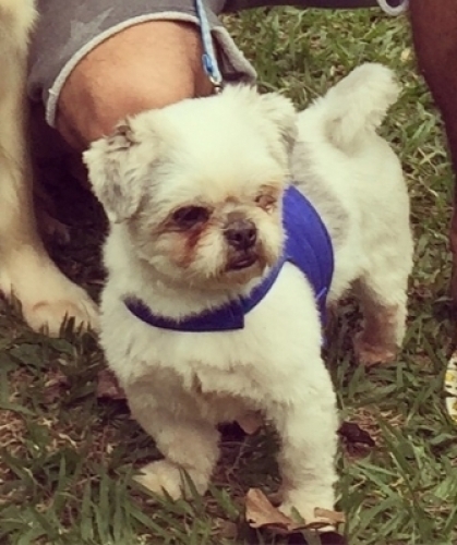 Shih Tzu, macho, branco e cinza. Muito dócil, gosta de ficar sempre em companhia. Ele fugiu na manhã de hoje, 23/09 por volta das 9h da manhã. Próximo ao corpo de bombeiros no parque do Carmo.