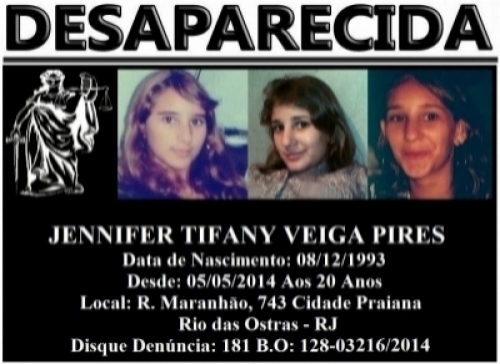 Vista pela última vez no dia cinco de maio de 2014, pois teria deixado voluntariamente a casa e os dois filhos sem deixar nenhuma pista para onde iria\n\nFONTE: http://www.macaenews.com.br/noticia/5427-rio-das-ostrascaso-do-desaparecimento-de-jennifer-continua-sem-solucao